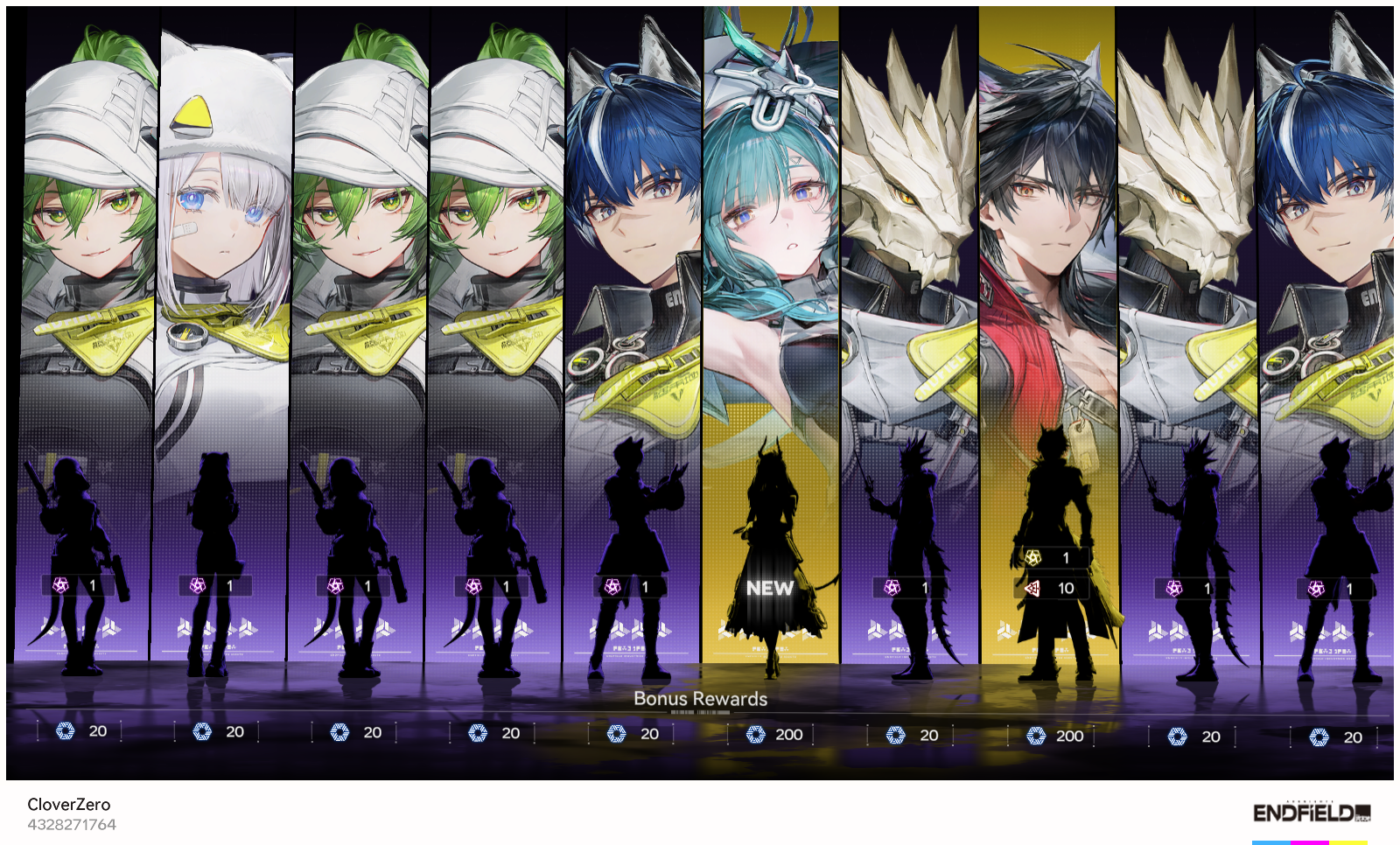 I'm too lazy (and too busy playing) to post Endfield stuff on social media, so here's a roundup of my gacha rolls so far from the newest to oldest.